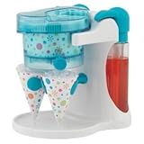 Feel like a kid again with this fun snow cone maker! Featuring two sharp shaving blades that allow you to make two snow cones at the same time. Child-safe switch activated by turning lid. Fun graphics rotate as regular ice cubes become fluffy shaved ice. Watch ice-shaving action through clear lid. Turn knob to select one or two cones. Cup holder keeps two cone cups in place or remove to shave ice into bowls or cups. Circular indents assure accurate cup placement. Easy clean drip tray offers no-mess convenience. Two pump bottles for quick and easy syrup dispensing. Syrup bottles remove for refrigerator storage and easy cleaning. Perfect for a refreshing summer treat! Child-safe and easy-to-operate. Hand washing recommended. Manufacturer's 1-year warranty. Scroll down for flavors, cups and straws sold separately. 12"W x 9"D x 12"H. Ages 4 years and up. (shipping weight 6 lbs)