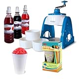 This shaved ice gift pack includes everything you need for your next snow cone party or afternoon treat. Includes the new Victorio Kitchen Products Hand Crank Ice Shaver, three (3) deliciously flavored syrups, and 25 cups and straws. Hand Crank Ice Shaver makes light, fluffy snow in a snap - no electricity needed! Includes one each of the following flavors: grape, cherry, red raspberry - with many more available separately.